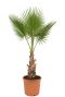 De Washingtonia Robusta is werkelijk een lust voor het oog met zijn mooie stam en grote ronde bladdelen. Goed beschermen tegen vorst. Deze waaierpalm kan ook als kuipplant gehouden worden en bij kou binnengehaald worden. Een mooie snelgroeiende palmboom.